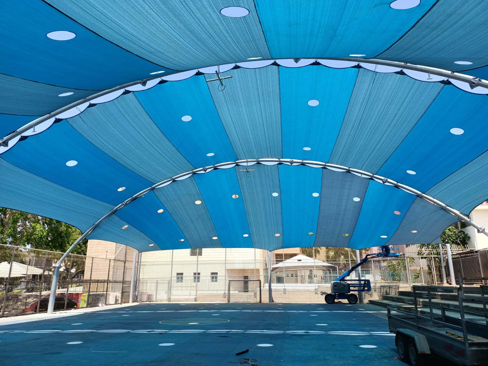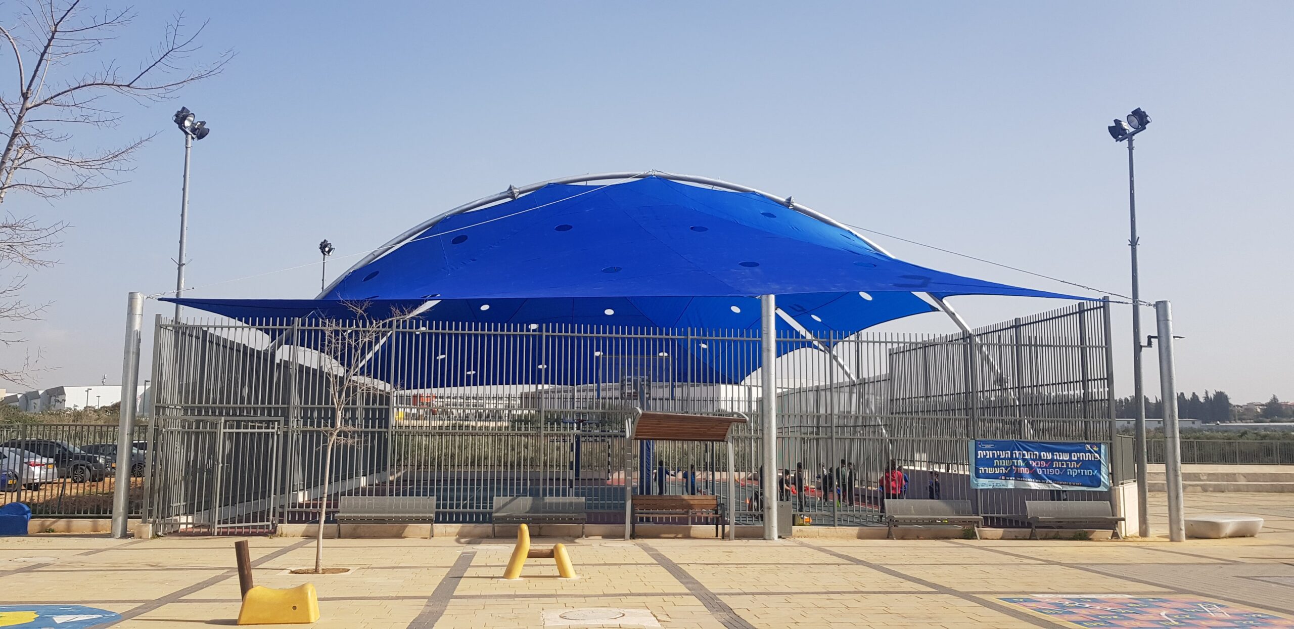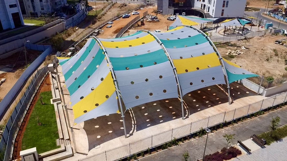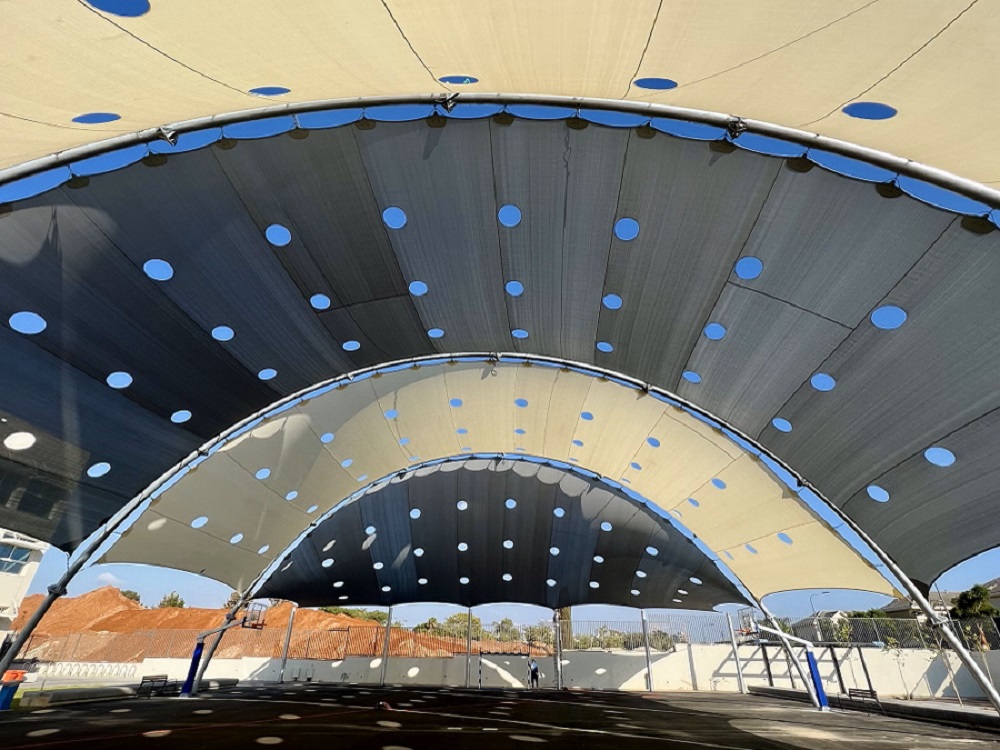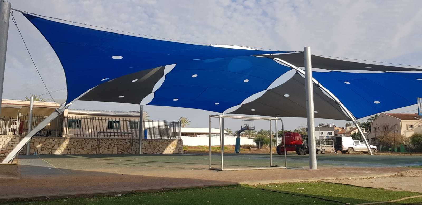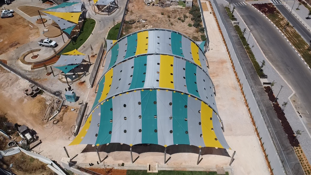 שיטת הצללה זו מיועדת למגרשי ספורט לכיסוי שטח גדול ונרחב במיוחד כיחידת הצללה אחת גדולה .