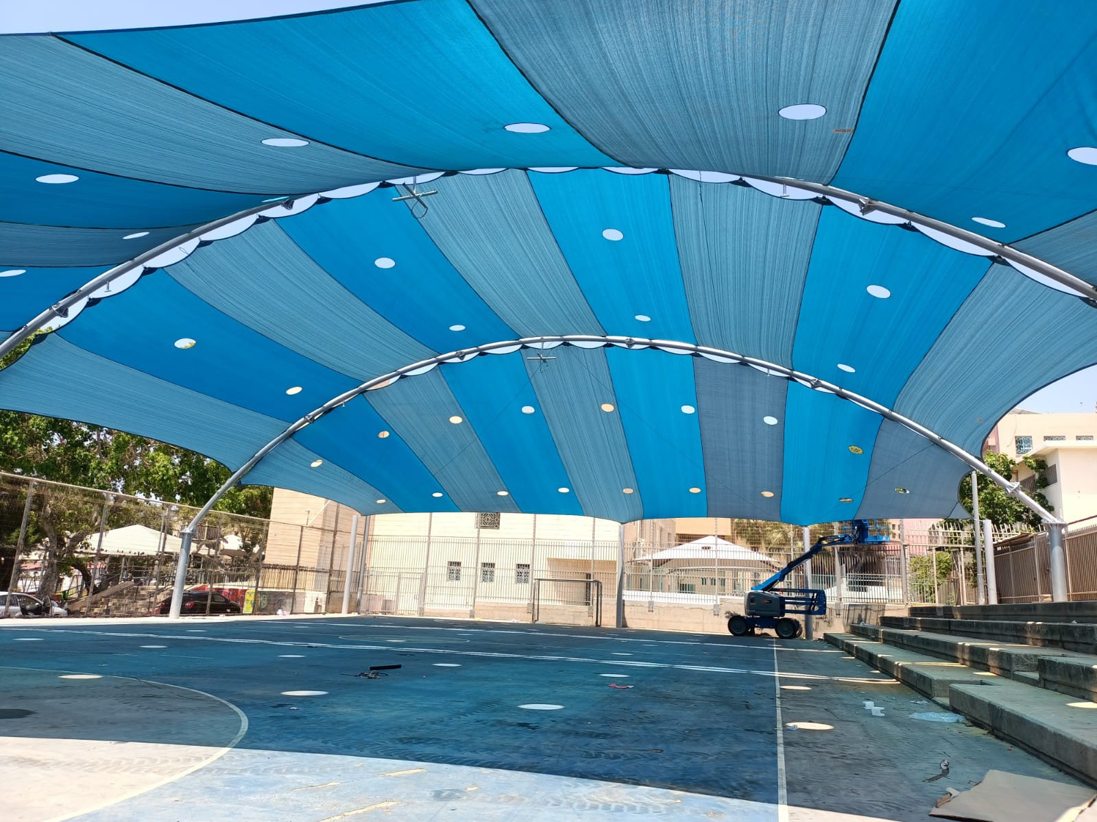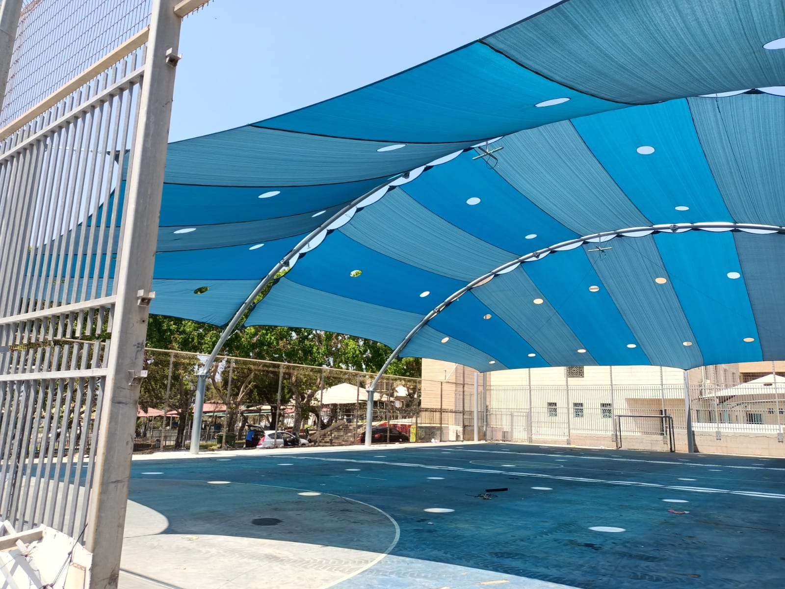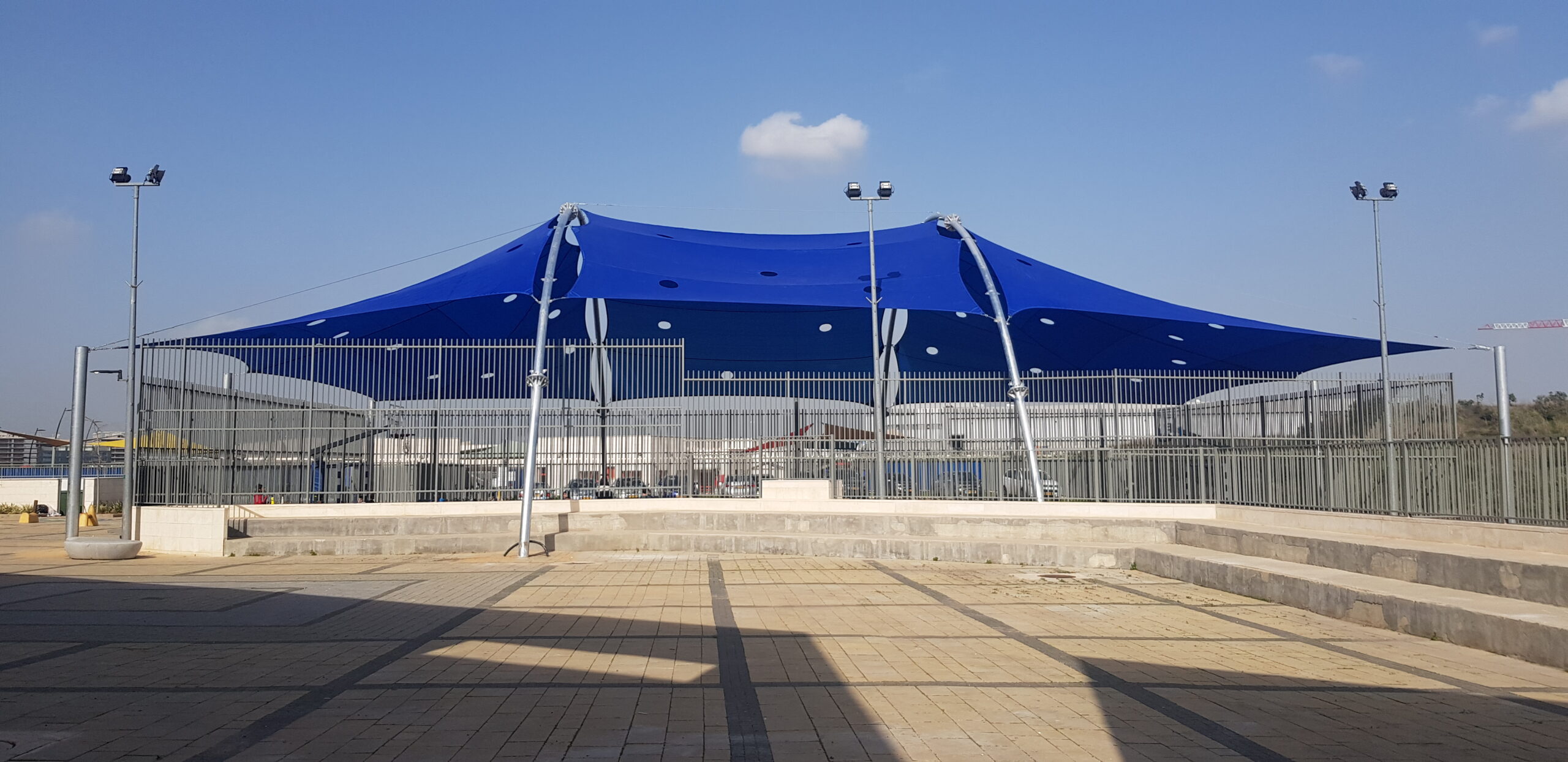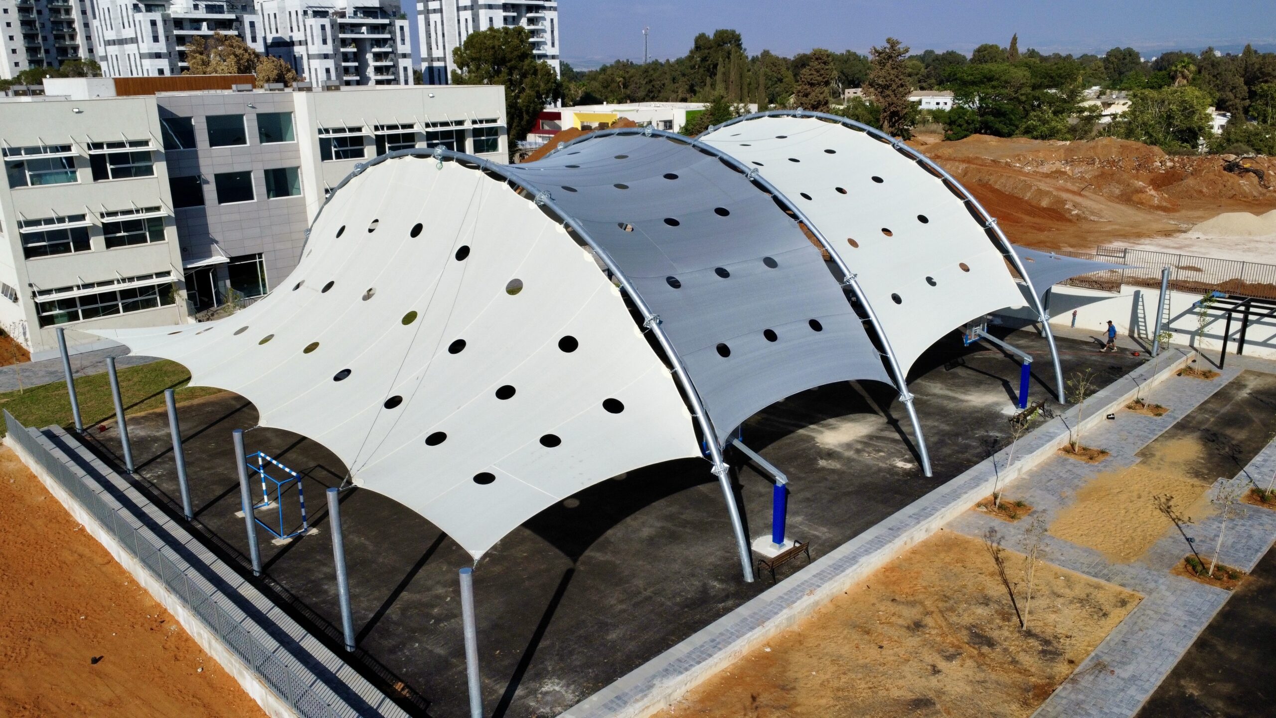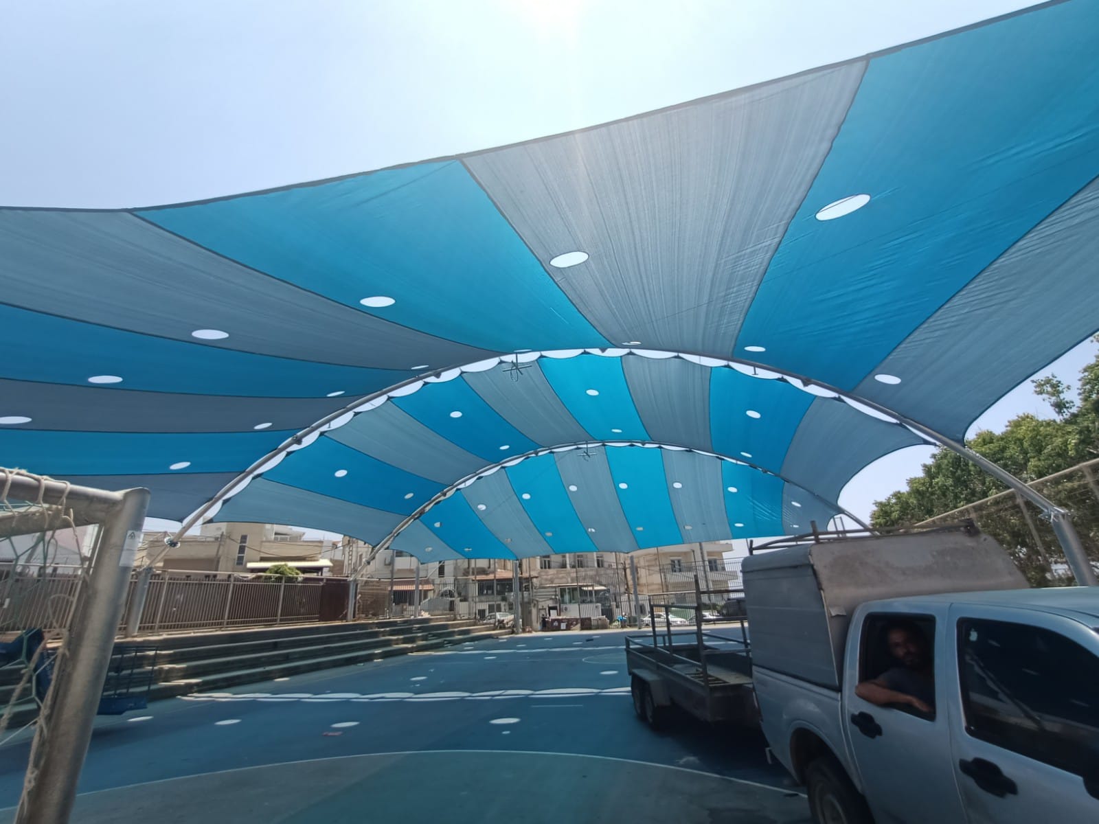 שיטת הצללה זו מיועדת למגרשי ספורט לכיסוי שטח גדול ונרחב במיוחד כיחידת הצללה אחת גדולה .
