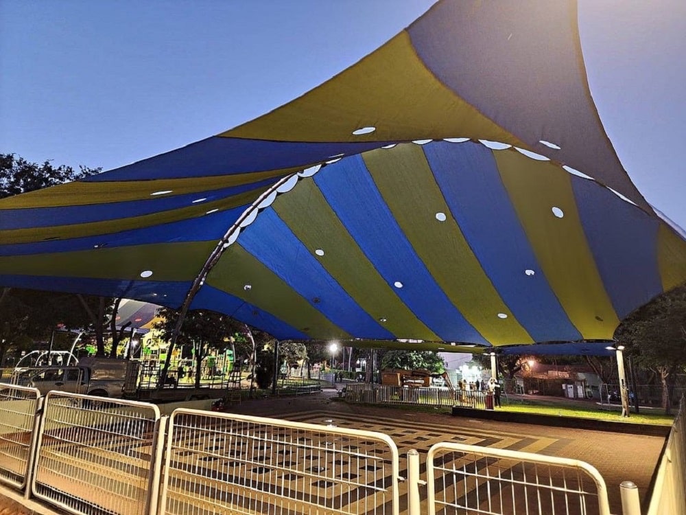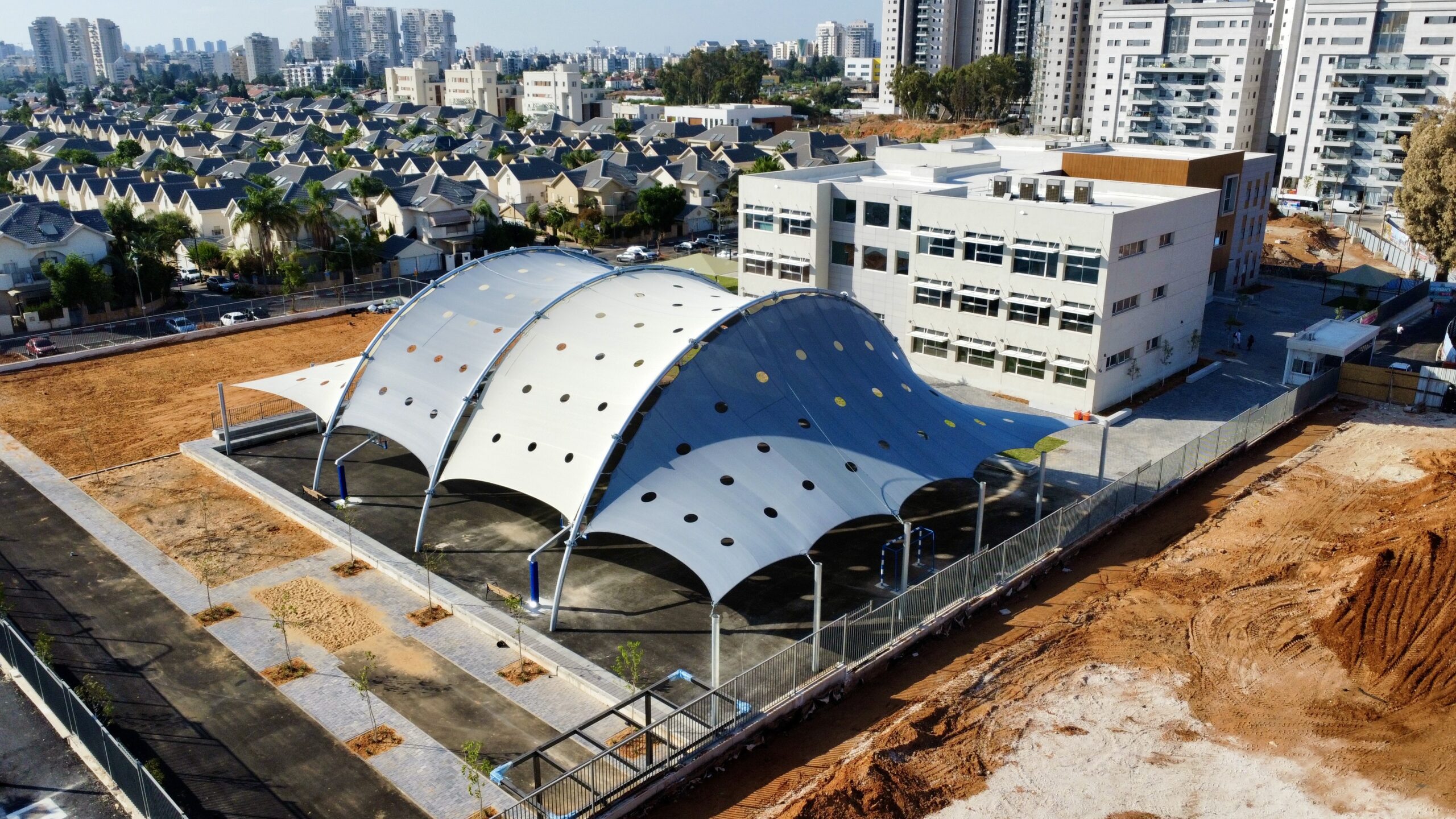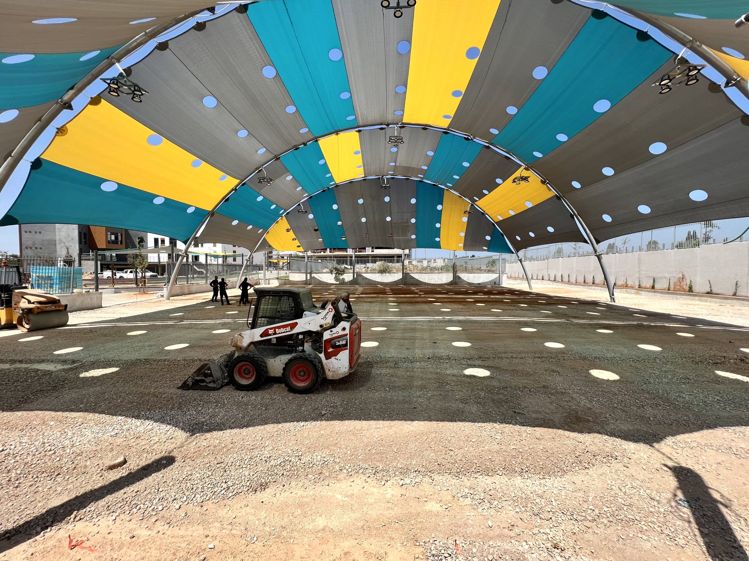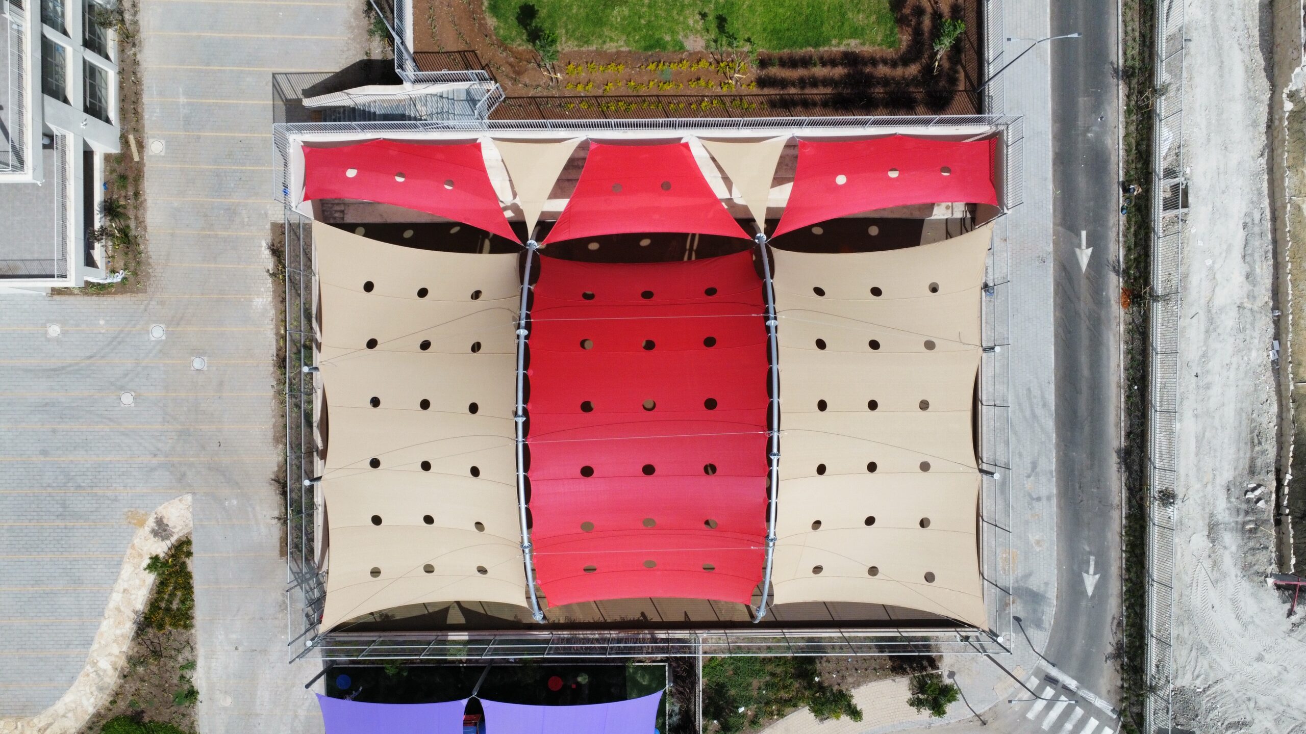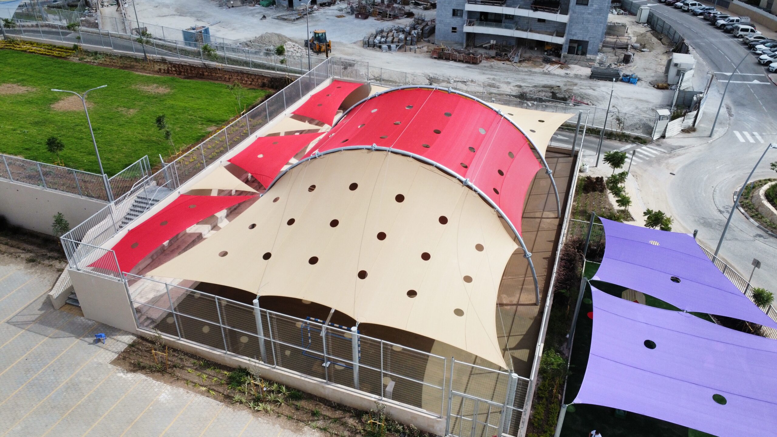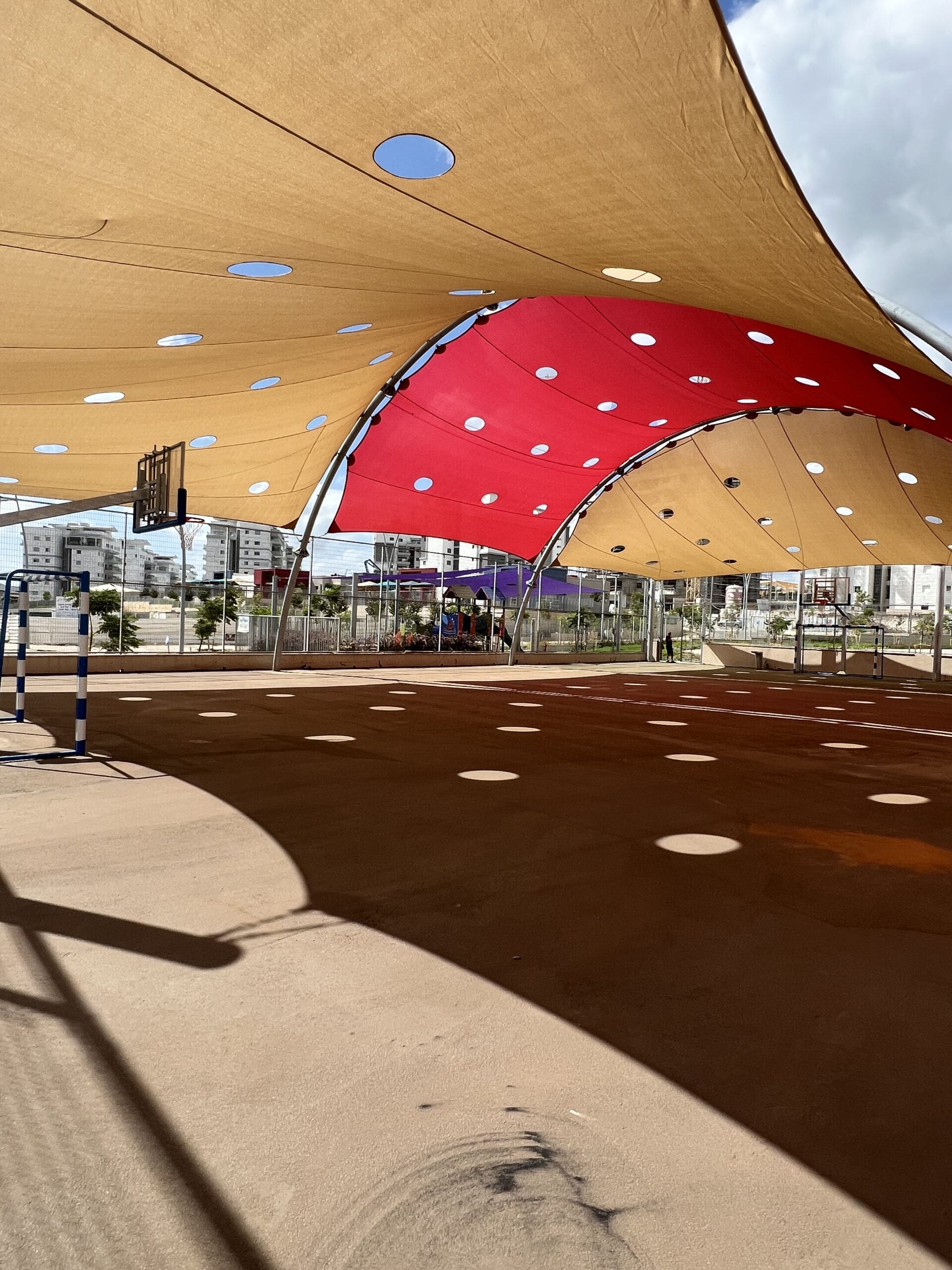 שיטת הצללה זו מיועדת למגרשי ספורט לכיסוי שטח גדול ונרחב במיוחד כיחידת הצללה אחת גדולה .