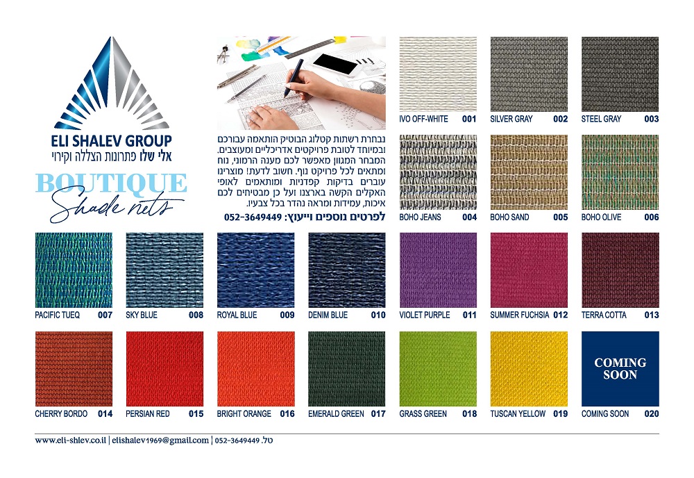 כל סוגי האריגים המוחזקים על ידי חברתנו מכילים חומרים מעכבי בעירה עפ"י תקן 5093 ואישור מכון התקנים מס' 9411914498, תקן אמריקאי – 701 NFPA99